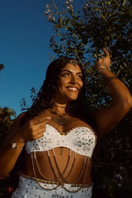 Cada dança é um rito em si — um encontro sagrado entre o corpo, o espírito e a terra. Nela, celebramos a ancestralidade, honramos nossos ciclos internos e permitimos que o movimento revele aquilo que as palavras não alcançam.